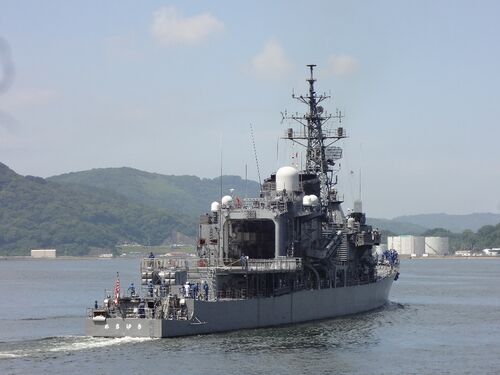 別の艦艇の一般公開時に倉敷岸壁で出入港の訓練?(艦長が交代したらしい)で 岸壁を離れ佐世保港内ですぐに引き返し接岸していた その時の出港シーン 画像の明るさから想像つくだろうがたぶん昨夏だ